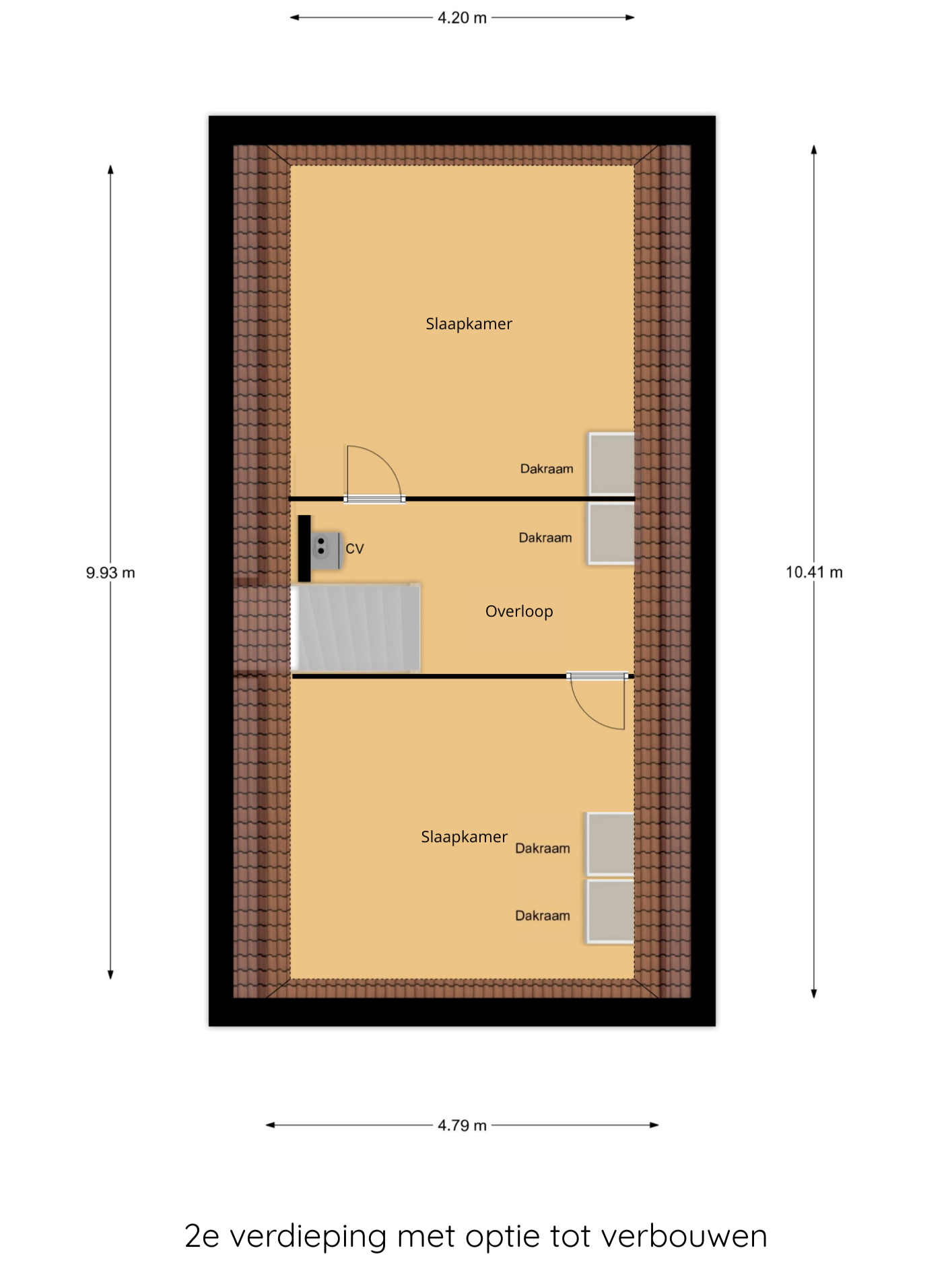 Op de tweede verdieping bevindt zich de open zolder. Desgewenst zijn hier nog 2 extra slaapkamers te realiseren. Eventueel kan er nog een bergvliering gerealiseerd worden.